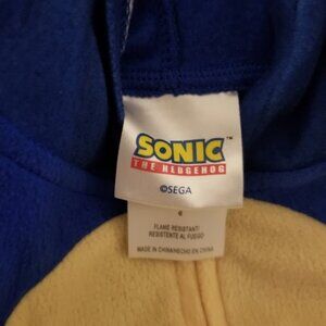 Sonic Onesie Size 6 is footless, and zipup with Sonic face hoodie.
