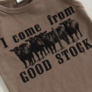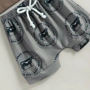 Boy, do we have the perfect outfit for your little cowboy! Our Boy's I Come From Good Stock Shorts Outfit features a playful, sleeveless tee and comfy cotton blend shorts with a western flair. Talk about good genes!