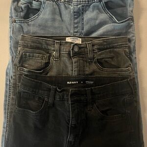 X 3 pairs of boys jeans sz 12. 2 pairs tapered denim and the black pair~straight leg. All have been gently worn and are in great condition. No flaws.