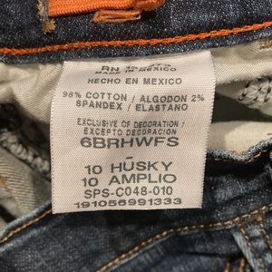 Previously worn but still excellent condition. Husky with adjustable waist and bootcut leg.