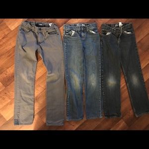 Pic 1: practically new, my son hated wearing jeans so these just sat. Left two are Old Navy size 12, right two are Cat & Jack, grey are size 10 & other is size 12.