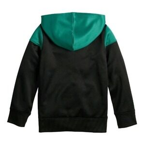 This Boys Jumping Beans Minecraft Graphic Zip Hoodie in size 4 is a stylish and comfortable outfit for young boys. Made of polyester fabric, the hoodie features a green and black color scheme with a Minecraft graphic, perfect for fans of the game. The zip closure and hoodie style make it easy to put on and take off, while the machine washable design ensures easy care. This single-piece hoodie is a great addition to any boy's wardrobe, combining practicality with a fun and trendy aesthetic.