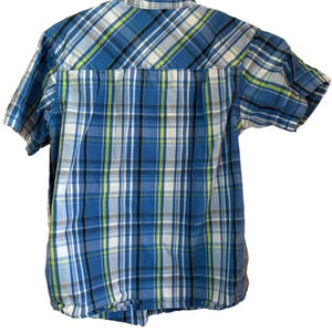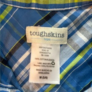 Boys Kids Toughskins Blue Green Plaid Button Down Short Sleeve Shirt 5/6 - Great condition!