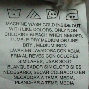 Easy Care: Machine Wash Inside Out Tumble - Line Dry Medium Iron Per Label