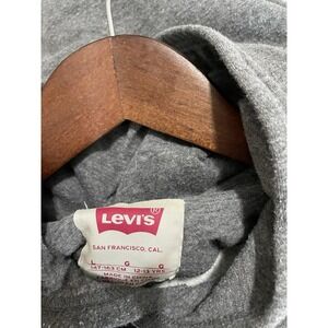 Wrap your young one in the comfort of Levi's with this stylish gray hoodie, perfect for school, walking, or any casual outing. The size Large hoodie features a classic crew neck and long sleeves, crafted from a soft cotton blend fabric that ensures all-day ease. The solid gray color gives it a versatile edge, making it an ideal match with a variety of outfits. Carefully constructed to fit a petite frame, this pullover boasts a neat and comfortable fit without compromising on style. The iconic Levi's logo accentuates the hoodie's design, adding a touch of authenticity. It's machine washable for hassle-free maintenance, so your boy can enjoy its cozy feel time and time again. Please refer to photos for measurements