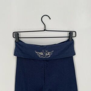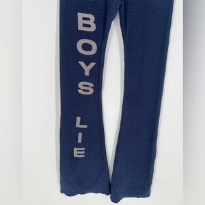 Boys Lie Burn The Bridge Navy Yoga Thermal Fold Over Boys Lie Print Flared Pants