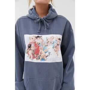 Oversized One Size Long Hooded Sweatshirt With Cherub Graphic Print