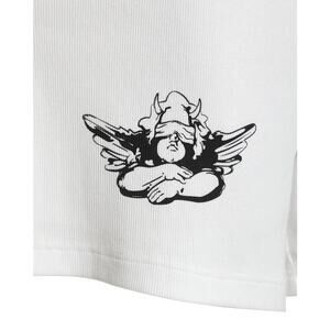 Cozy meets edgy in these Boys Lie Rebel Shorts! Crafted in soft ribbed fabric with a relaxed fit, they feature a drawstring waist, side pockets, and bold black graphics. The front shows a blindfolded angel graphic, while the back makes a statement with “BOYS LIE” in gothic lettering. Perfect for lounging or pairing with your favorite streetwear pieces.