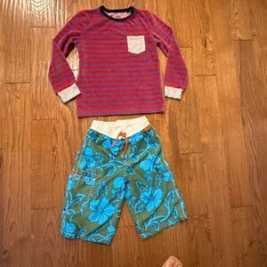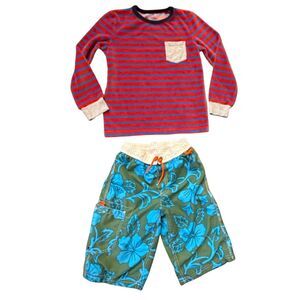 Boys Mini Boden bundle terry top and swim trunks size 8