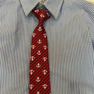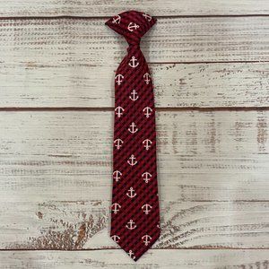 Includes coordinating Red/Navy Blue clip-on necktie with adorable White Anchors