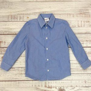 Shirt: Blue/White pinstripe with point collar; button cuffs