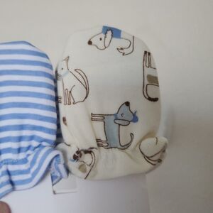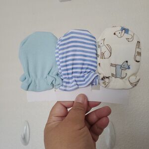 Boy’s Newborn Child Mittens, 3 pack Doggie Stripes and Solid Cream Blue Green