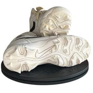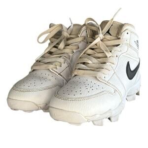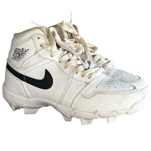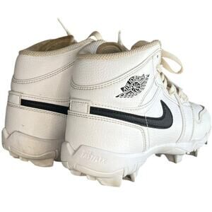 Step up to the plate in style with these awesome Nike Jordan 1 Mid MCS baseball cleats! These cleats are in excellent condition and ready for action. The classic white leather design will have you looking and feeling your best on the field.