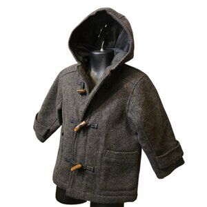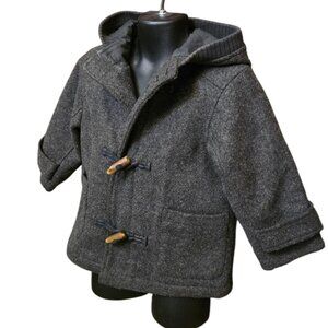 Boy's PLACE Gray Wool Blend Winter Hooded Duffle Coat Jacket sz 24m