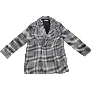 This classic boy's coat is a timeless wardrobe staple that will keep your little one cozy and stylish all season long. The sophisticated double-breasted design features a classic plaid pattern in shades of black and white for a sophisticated yet youthful look. The tailored fit ensures a polished look, while the long sleeves and mid-length cut offer a versatile fit suitable for various occasions.