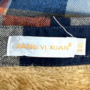 Boys Plaid Flannel Fleece Jacket Sz XXL Button Up Warm Collar Blue Tan Orange Warm Outdoor Western
