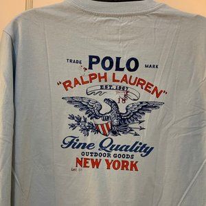 Boy's Polo Ralph Lauren long sleeve, light blue, graphic tee with pocket. New with tags. Size L (14-16).