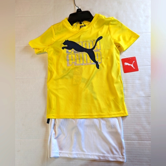 Brand New With Tags, Boys Puma 3 Piece Short Set. Size 5. Comes with a Yellow shirt with a Puma on it, a White tank top with a Puma on it and a Blue pair of shorts. Very nice set, perfect for summer outings! No rips tears or stains. Smoke free home.