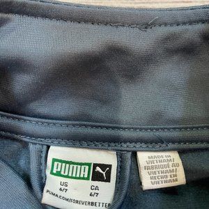 Sporty Style -- this Puma Performance Jacket looks cool and will help provide a little warmth on the chilly days. Features color block colors in grey/white/navy blue, a full-zip front closure, side hand pockets, mock neck, high-quality Puma sleek performance fabrication and printed Puma logo on front left chest.