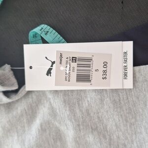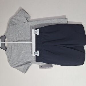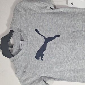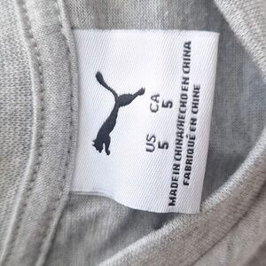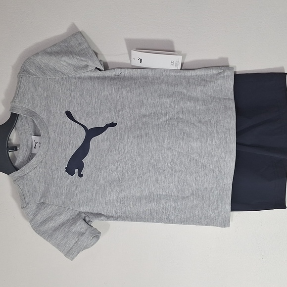 Heather gray short sleeve tee and a matching pair of black shorts with an elastic waistband. Classic Puma logo on both pieces. Soft and casual. Size 5 and NWT.