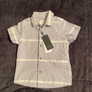 NWT. Boys Quicksilver Button Down Shirt in a size 3. Color is listed as stonewash. It’s a pale blue with white stripes. Pocket on front chest.