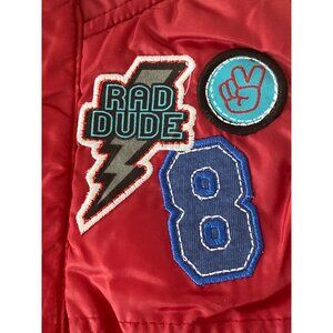 Boys Red Puffer Vest Lightning Patches Black Pant Gray Shirt Print 3-Piece New