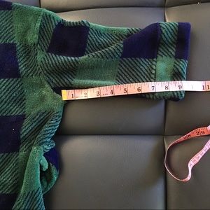 Green and blue bath/lounge robe. Belt is sewn into robe to keep from losing it.