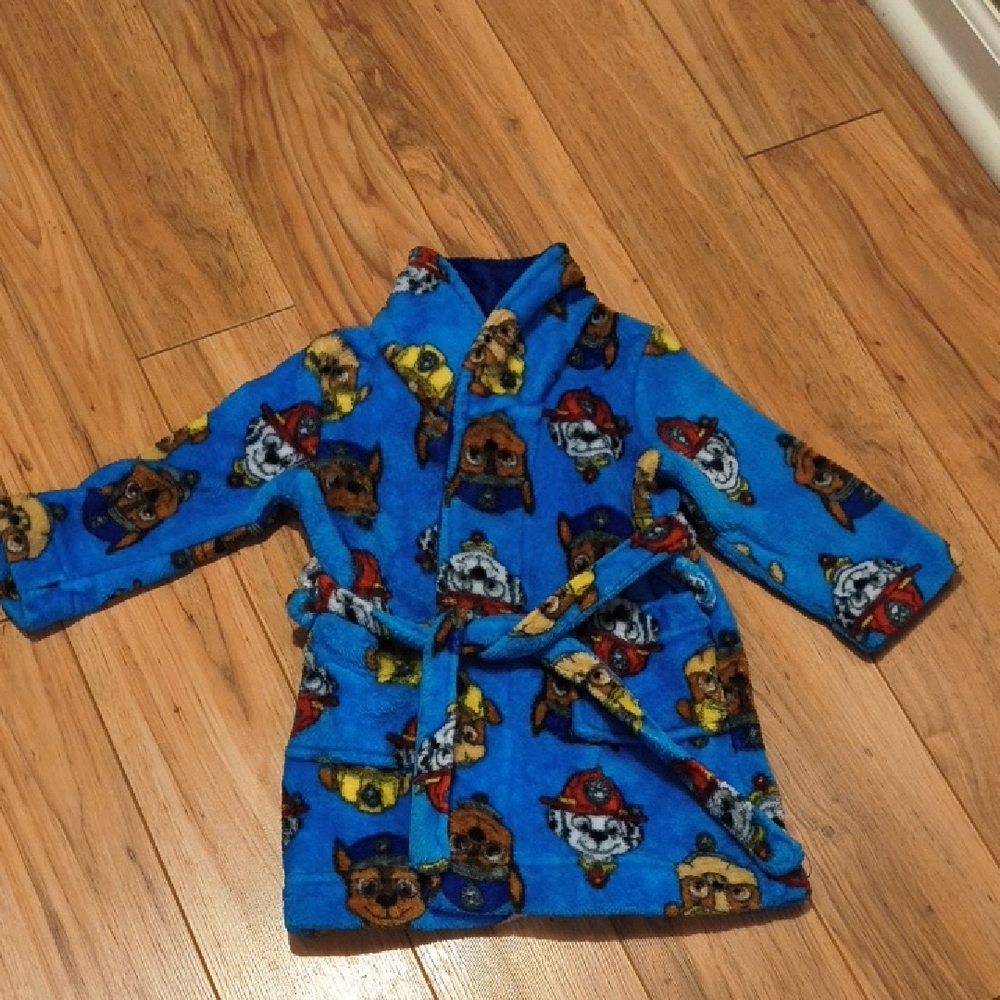 boys robe, multi-colored, paw patrol, pockets on the front, attached belt, size 2T