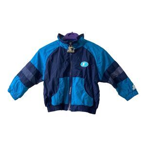 Boys Size 12 Months Windbreaker Jacket Starter Blue Vintage Full Zip. Very clean and well-kept condition. No major damage or stains that we saw at all. May have Some light wear from use and storage but still in good condition.