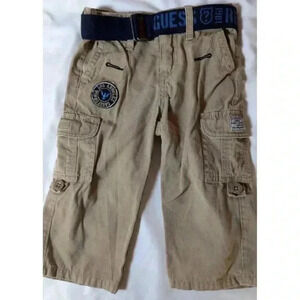 * GUESS Jeans 100% Cotton Khaki belted cargo pants with pockets - navy logo belt