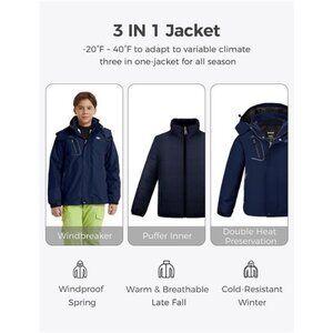 Boy's Ski Jacket Waterproof 3 in 1 Snow Coat Warm Fleece Winter Coat