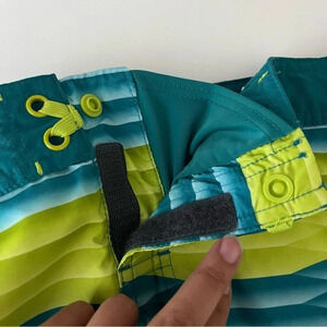 Boy’s Swim Trunks. Swimsuit, Neon Green & Blue, Size 16