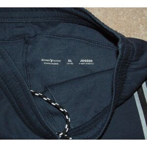These pants are size XL (14-16) and made by Old Navy Active. They are very gently worn, in like new condition, no rips or stains. They have an elastic waist with an inside drawstring and two front zipped pockets. They are made with 69% cotton, 26% polyester and 5% spandex and machine washable. Perfect for school or every day wear.