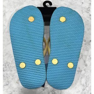New with tags. Boys Teal & Yellow Cool Dude Chatties Flip Flops Size 11/12