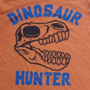 Orange long sleeve "Dinosaur Hunter" thermal graphic tee.