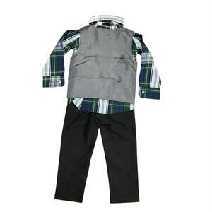 Boy’s Toddler Plaid Shirt with Gray Vest and Black Pants Set Size 3T NWT