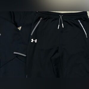 Includes a warm Under Armour “Storm” winter coat, sz XL. An Under Armour “Storm” hoodie sweatshirt, sz XL. A zip down Abercrombie & Fitch hoodie sweatshirt, sz 15/16. It has the logo embroidered on the upper front. A pair of Under Armour jogger sweatpants, sz XL. A Champion hoodie sweatshirt, sz XL. Great condition.