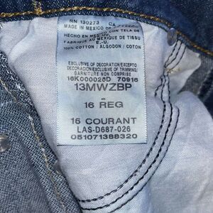 This pair of vintage Wrangler jeans for boys is perfect for the little cowboy in your life. Made of 100% cotton, these straight-legged jeans feature a classic blue color and a waist size of 26 inches. The jeans have an inseam of 30 inches and are labeled as a size 16 regular.