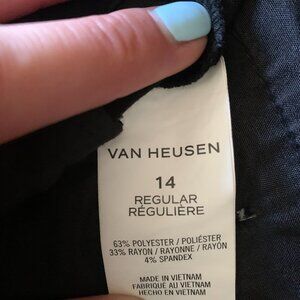 Boys Van Heusen Suit. Worn Once; Dry-Clean tags still attached. Size 14. Comes with pants, button-up shirt, clip-on tie, and suit jacket.