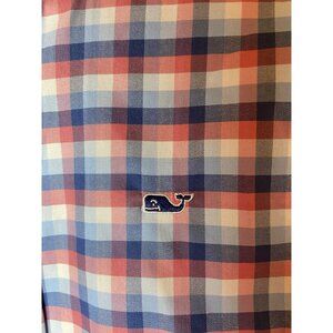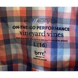 Boys Vineyard Vines On The Go Performance Shirt Button Up Blue Pink Plaid L 16
