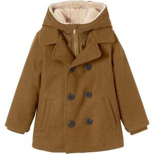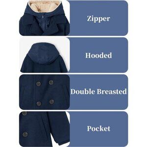 Boys Wool Blend Winter Coat Notched Collar Double Breasted Hooded Pea Coat