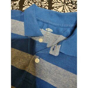 Boys/Young Adult Old Navy Striped Blue & Gray Collared Short Sleeve Polo Shirt - Size Small