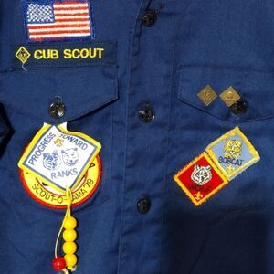 Boys Youth Vintage 1980's Cub Scout BSA Long Sleeve Uniform Shirt W/ Patches!