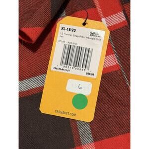 Boy's Youth XL Carhartt Sherpa Lined Snap Front Plaid Flannel Hooded Jacket NEW