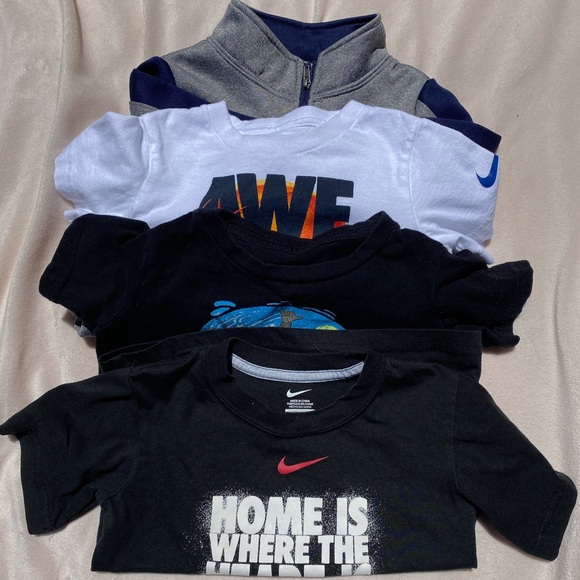 Wildcats 2T, Nike white 3T (2-3 YRS), Nike black 3T, Hurley 4T. All in great condition. All for $25 and $4.99 shipping once liked or $8 each!