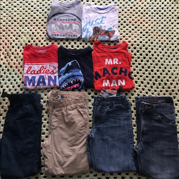 Carters, Levi, Old Navy brands shirt and pants all size 5 and in great condition. Blue and beige pants are new never worn only washed. Other items no pilling or fading great condition.