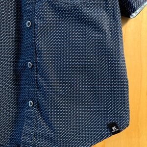 Kenneth Cole button down shirt. Navy with blue and white detail. Excellent condition. Washed with free and clear detergent and air dried always. Smoke free, pet free home.