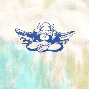 This is a brand new, unreleased Boys Lie tie dye green "Icee" drawstring bag with a FREE Boys Lie angel logo sticker. The bag measures 11 inches in width, 14 inches in height, and 4 inches in depth and is considered a medium size. The exterior is made of cotton and features a tie dye pattern in green and Ivory.