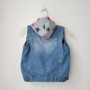 Boys or Girls Denim with Cotton Lined Front Open Buttons Hooded Vest Size 5-6