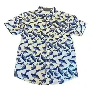 White shirt with blue sharks